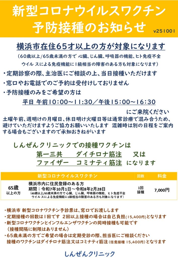 新型コロナワクチン予防接種のお知らせ(令和7年度)