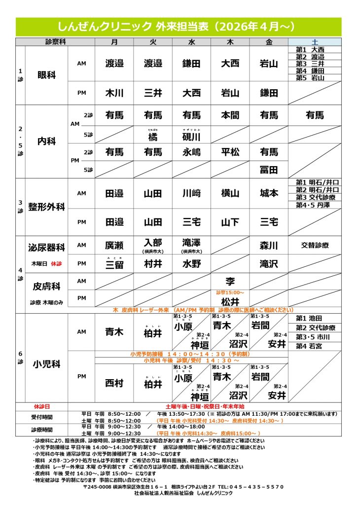 2026年4月からの外来担当のお知らせ
